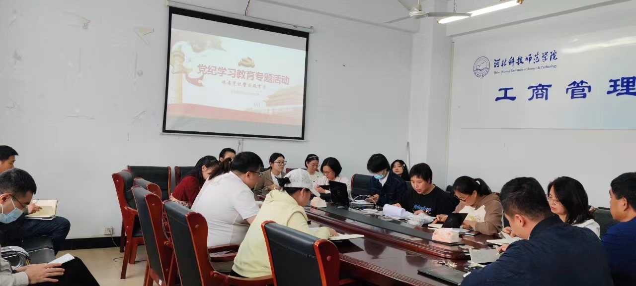根据《中共河北科技师范学院开云kaiyun官网教工党支部关于开展党纪学习教育的实施方案》,2024年5月7日工商教工党支部在逸夫楼A608进行党纪警示教育学习活动。活动由教工党支部书记高静同志同志主持,开云kaiyun官网班子成员以及全体教职工党员参加本次学习活动。
