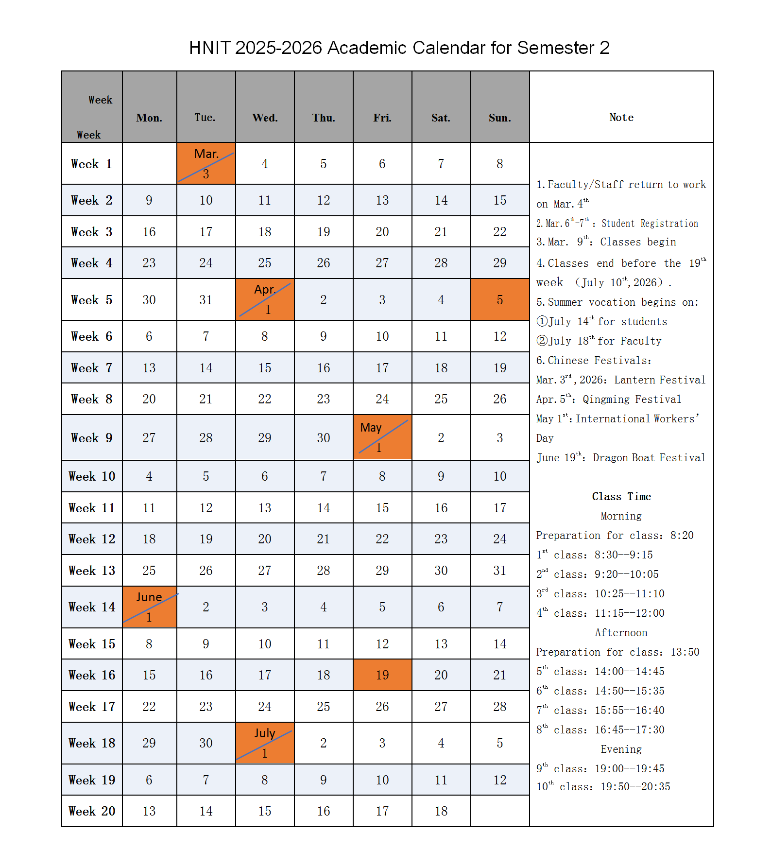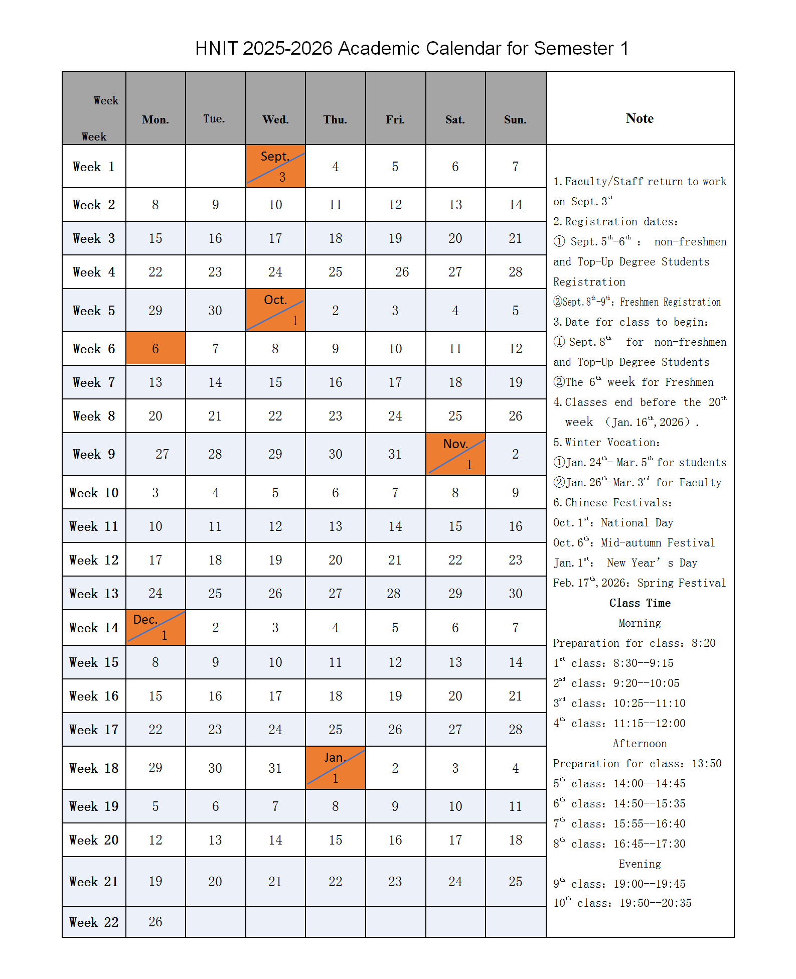 HNIT 2025-2026 Academic Calendar