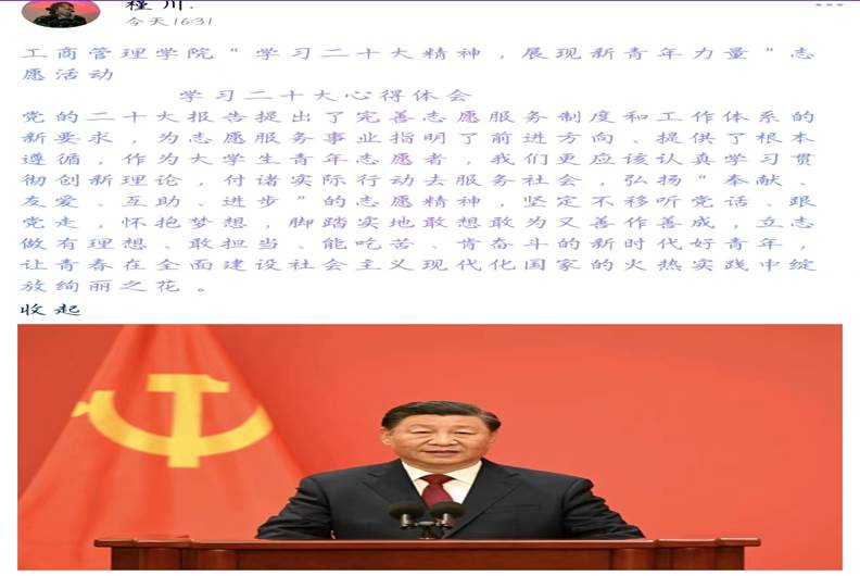 开云kaiyun官网青年志愿者协会向学院青年志愿者发起倡议,号召志愿者积极学习贯彻党的二十大精神,学院青年志愿者以集中和分散两种形式开展学习,并将学习心得在新媒体平台分享,志愿者表示,“党的二十大报告提出了完善志愿服务制度和工作体系的新要求,为志愿服务事业指明了前进方向、提供了根本遵循,作为大学生青年志愿者,我们更应该认真学习贯彻创新理论,付诸实际行动去服务社会,弘扬“奉献、友爱、互助、进步”的志愿精神,坚定不移听党话、跟党走。”