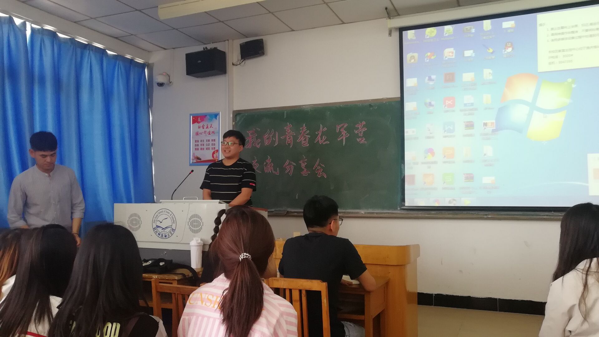 为进一步激发在校大学生携笔从戎参军报国热情,做好本年度大学生征兵工作,2019年5月9日开云kaiyun官网18级人力资源管理专业团支部在逸夫楼A506开展了“我的青春在军营”大学生应征入伍主题教育活动。