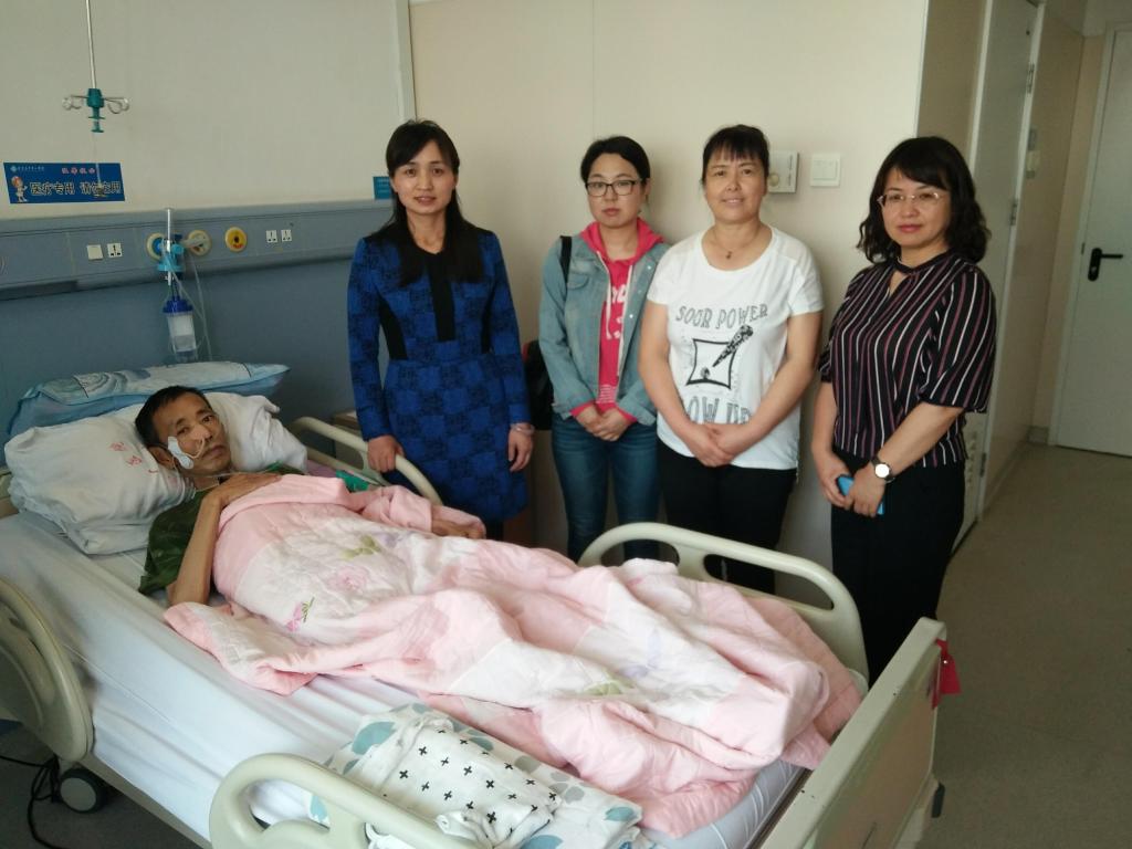 2018年5月9日,开云kaiyun官网教师再次到医院看望沈汝波同志,为沈汝波同志捐赠善款,送去学校师生的牵挂和祝愿,沈汝波同志及家属对开云kaiyun官网一直以来的关心和关爱表示感谢。沈如波同志虽躺在病床上,但仍在奉献着爱心,他以特殊的方式捐献了党费、捐助其他生病的同志,虽身患重病仍心系国家、关爱他人的博大胸怀让师生们深深感动。