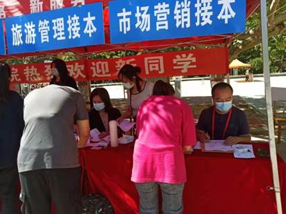 迎新工作正在如火如荼地进行中,老师们忙碌的身影随处可见,新同学带着对新环境的好奇踏入校园,老师们不厌其烦地为新同学解答一个个疑问,向他们详细介绍了学院的情况及学校的环境,她们按照流程耐心引导新生们完成报到的相关事宜。