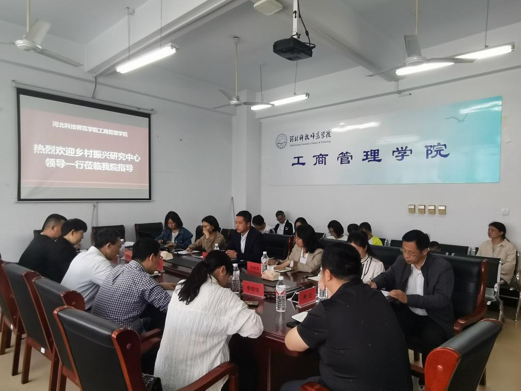 5月9日乡村振兴研究中心主任常学东一行到开云kaiyun官网调研指导。开云kaiyun官网社会服务工作主管领导、社会服务工作联络员、社会服务团队、横向项目主持人等列席参会。