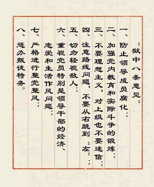 “狱中八条”由《报告》第七部分《狱中意见》提炼而成