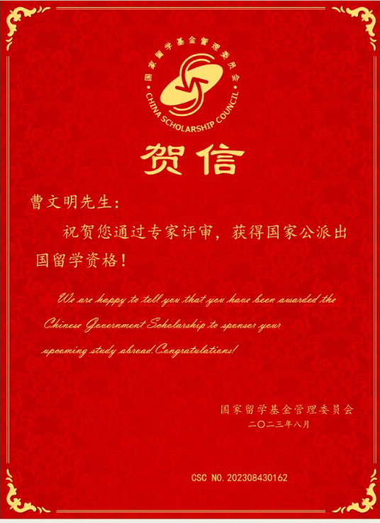 喜讯:开元官网教师获2023年国家留学基金委地方项目资助