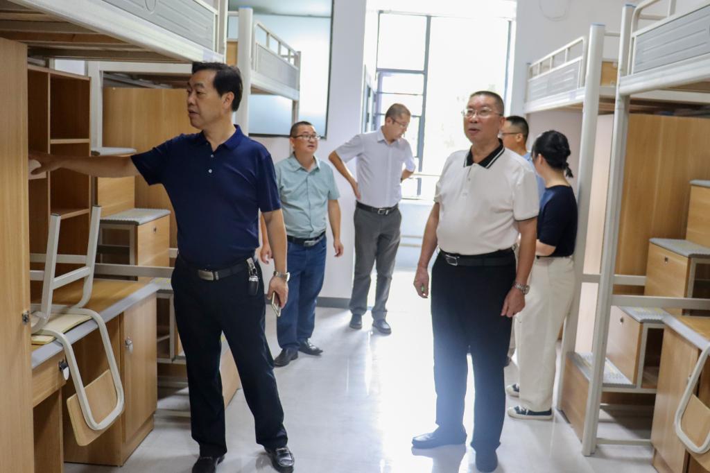 9月15日上午,学校党委书记宋克慧,党委委员、副校长、宣传部、统战部部长刘龙昌就迎新前校园安全、宿舍环境和服务保障等工作进行检查指导。党政办、学工部、后勤基建处、党政督查室、党委宣传部等部门有关同志陪同检查。