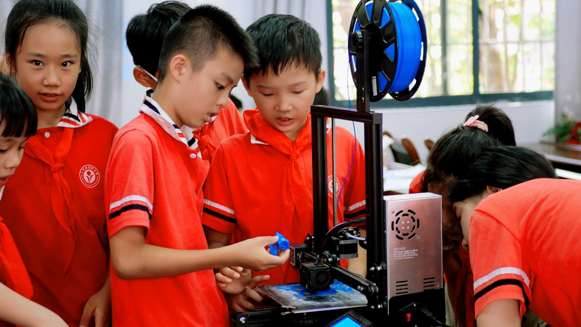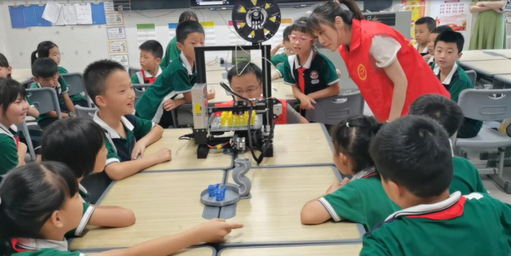 在衡阳市石鼓区朝阳小学,活动以产品的设计流程为核心,通过实物演示,让小朋友们深入了解了产品设计的原理和考虑因素。在实践环节部分,团队给出特定的问题,引导小朋友们动手绘制了一个属于自己的创意产品,并观看了设计作品在3D打印机中变为实物的过程。