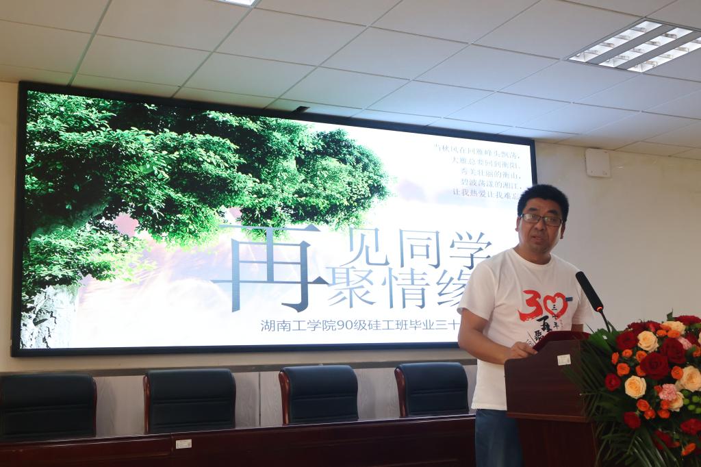 90硅工1、2班班主任熊铭奇、王安平先后在活动中饶有兴致地回忆起了昔日与同学们一起在校园共同度过的美好时光,寄语校友们要有大格局,踔厉奋发、勇立潮头,为祖国继续健康工作三十年。