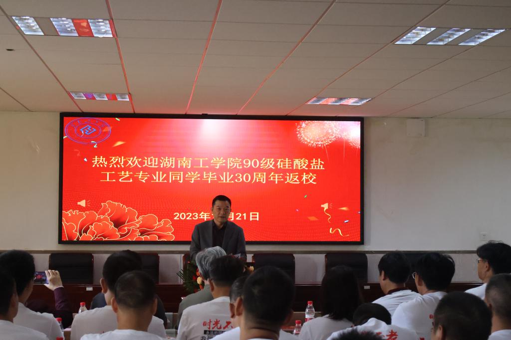 曹执令代表学校向90级硅酸盐工艺校友们表示热烈的欢迎,向校友们一直以来对母校建设发展的关心和支持表示衷心的感谢。