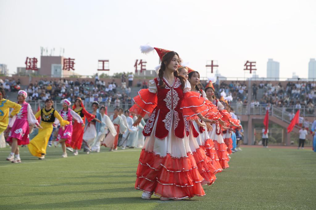 开幕式上,裁判、护校队及各学院方阵队等13个方阵队迈着整齐的步伐,喊着响亮的口号以青春洋溢的姿态走过主席台接受检阅。表演中,学校教导队表演的中华武术-擒敌拳刚劲有力,一招一式间尽显湖工学子风采。“民族大团结”团体操融入了藏族舞、哈萨克族舞、维吾尔族舞,同时结合现代舞蹈街舞、啦啦操等舞蹈类型,展示了各民族文化的不同风采。在此起彼伏的掌声和欢呼声中,运动会如火如荼地开展起来。