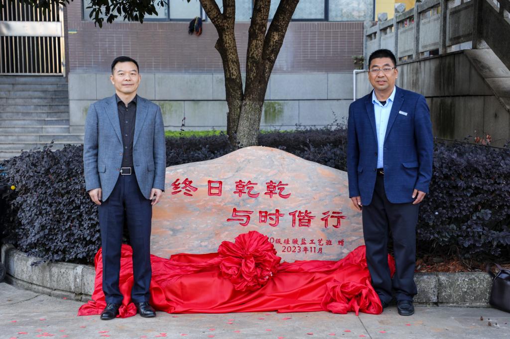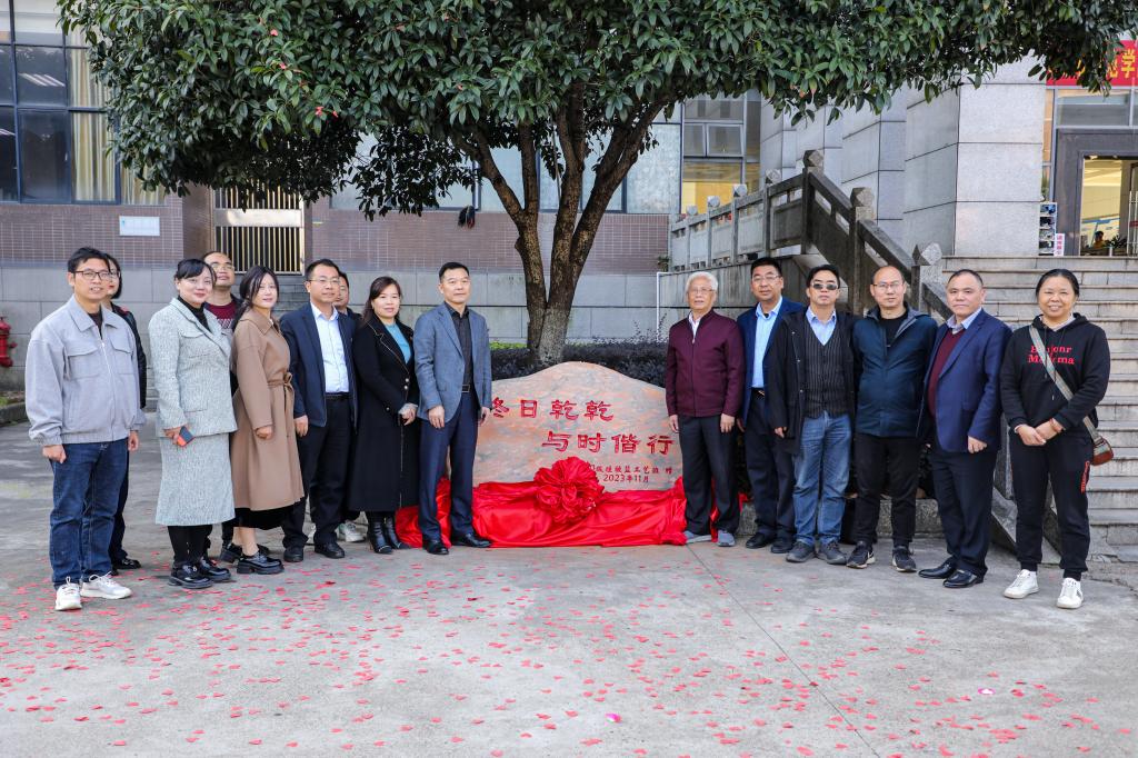 与会人员共同为90级硅酸盐工艺班认捐树举行揭牌仪式,并合影留恋。(文/罗维 图/大学生通讯社 审稿人/一审:彭婷 二审:彭国柱  三审:肖中云)