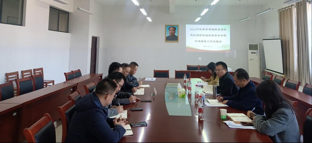 12月14日,根据省教育厅的统一部署,湖南省高校思想政治理论课教指委专家南华大学黄秋生教授、湘南学院廖义军教授、湖南环境生物职业技术学院彭佩林主任一行来校开展听课并调研指导工作。副校长谢柯及马克思主义学院负责人陪同调研。