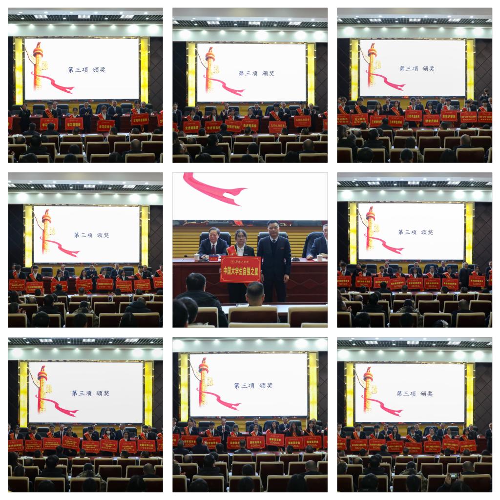 接续奋进力量,铸就青春华章。优秀学生表彰大会是学校一年一度的盛会,学校将持续全面贯彻党的教育方针,落实立德树人根本任务,加强榜样引领,在广大学生中营造看优秀、学优秀、成优秀的良好校风学风,共同点亮奋进的青春,致敬奋斗的时代!(文/学生工作部 任静 图/大学生通讯社 戴坤 何安婷 刘卡麦 审稿人/一审:彭婷 二审:彭国柱 三审:肖中云)