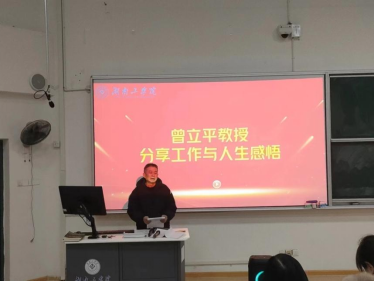曾立平教授作为教师代表发言,他强调教书育人是一项非常幸福和有意义的工作,同时也是一项艰辛和具有挑战性的工作,需要不断学习、勇于探索,希望在未来的道路上与青年教师共同担负起教育事业的责任和使命,为学校的发展贡献自己的力量。