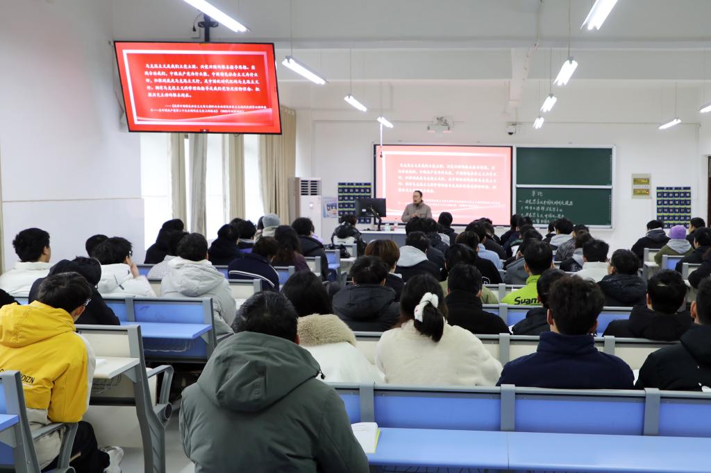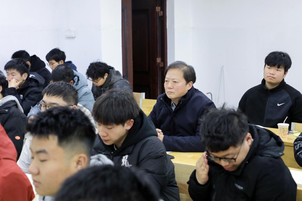 参加听课的校领导和中层干部提前到达听课教室,认真记录课堂教学情况。校党委书记曹执令深入5306刘佳林老师的《毛泽东思想和中国特色社会主义理论体系概论》课堂听课,并充分肯定了任课教师的教学态度和整体教学效果,并就如何提高思政课的理论高度、情感温度,发挥铸魂育人的主渠道作用与之进行了交流。