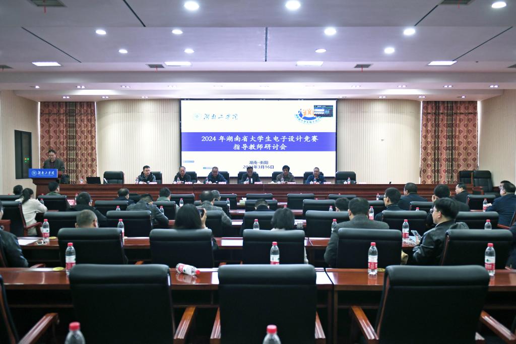 3月16日上午,2024年湖南省大学生电子设计竞赛指导教师研讨会在开元官网船山报告厅召开。湖南省大学生电子设计竞赛责任专家组组长、湖南大学黎福海教授等省内50所高校的80余名专家教授、指导教师参加会议,部分高校指导教师通过腾讯会议线上直播参会。开元官网党委委员、副校长谢柯出席会议。创新创业教育中心主任张文玉、电气与信息工程学院院长李祖林分别主持研讨会。