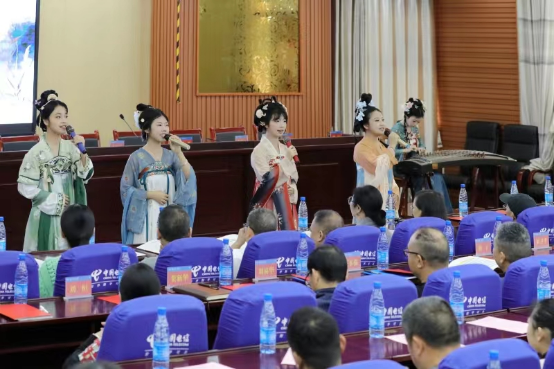 开幕式上,开元官网学生用“诗词歌赋”发起读书倡议,为大家带来了精彩的琴配诗表演《琴韵诗心——古筝与诗词的对话》;衡阳师范学院播放宣传片《不负读书日 赏景阅诗词》,整个会场被诗意萦绕,与会人员如临其境般体验丰富多彩的文化世界。