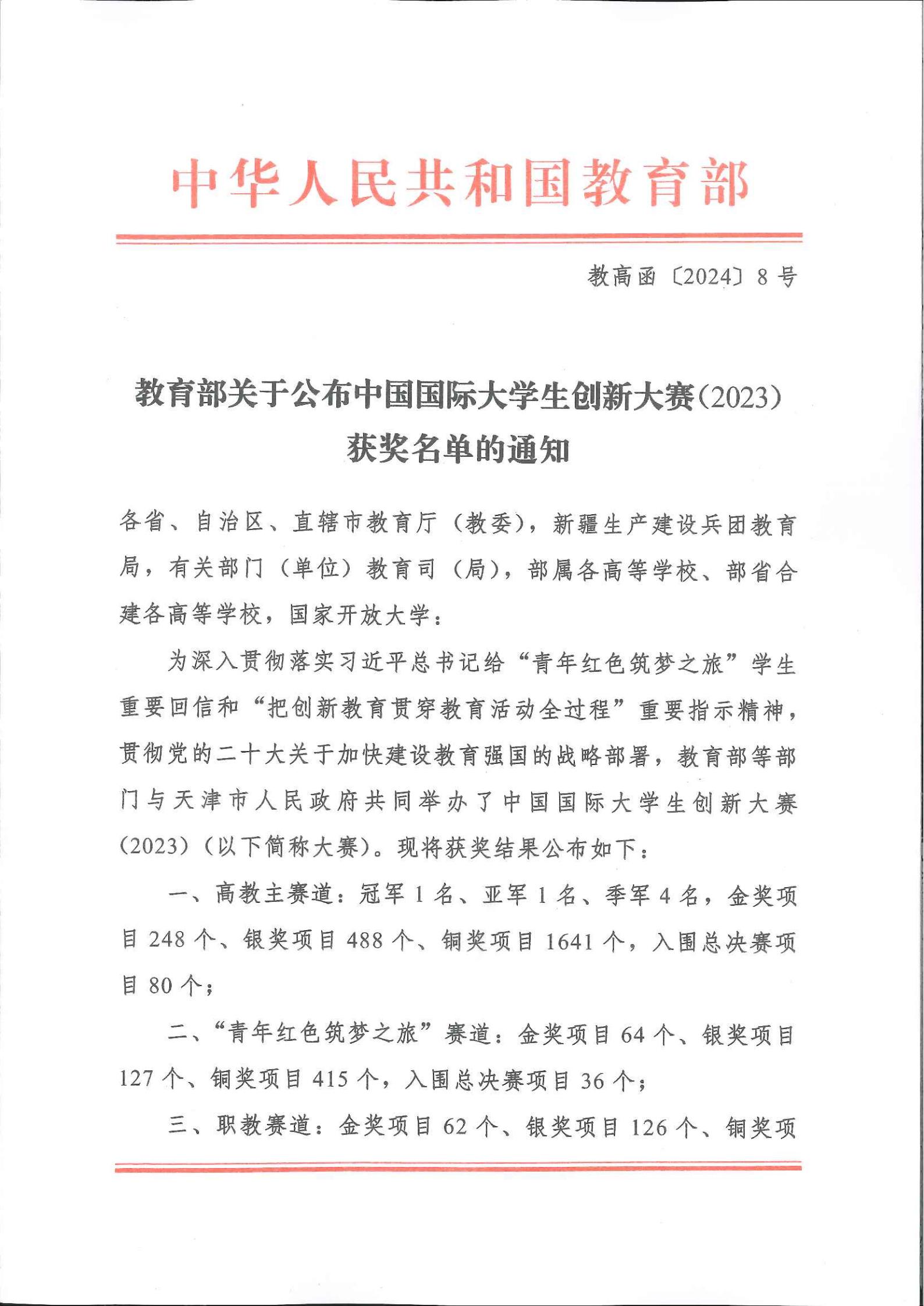 材料科学与工程学院学子斩获中国国际大学生创新大赛(2023)国赛铜奖
