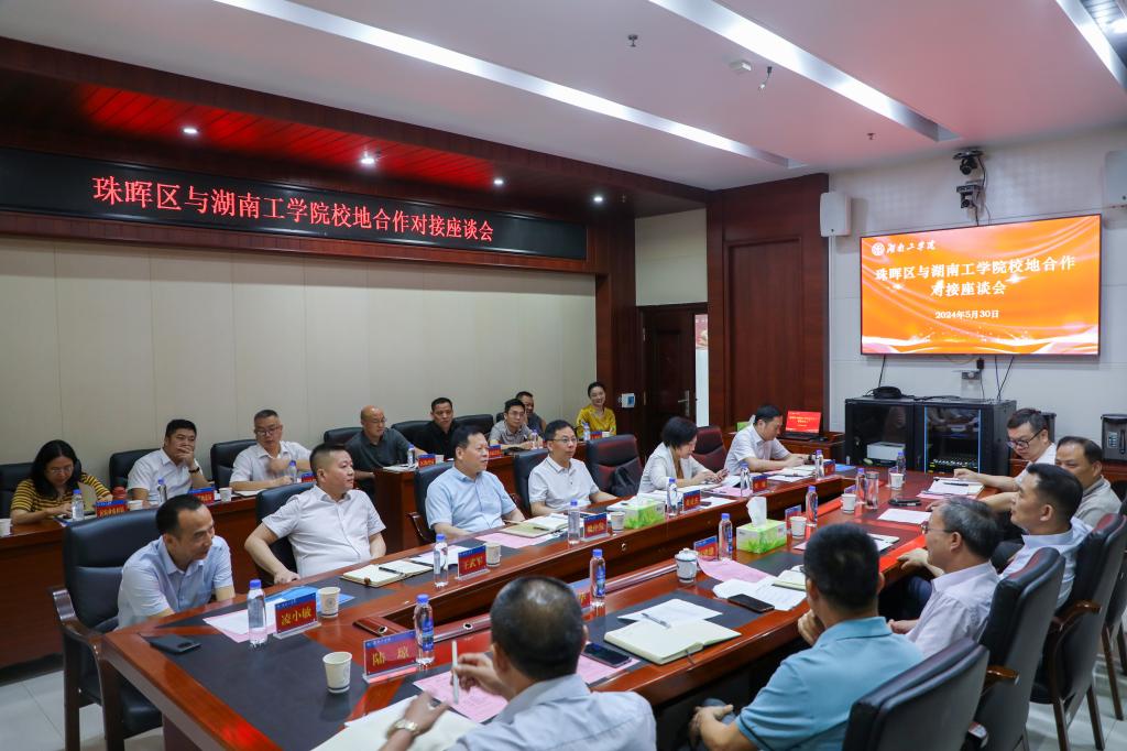 5月30日上午,珠晖区委书记魏中发、区委副书记黄灵杰一行来校交流校地合作对接事宜。校党委书记曹执令,党委副书记何建雄,党委委员、副校长谢柯,区委常委、区委办主任王武军,区委常委、宣传部长刘敏,区人大常委会二级调研员凌小敏,区政府副区长刘勇等出席座谈会,会议由区委副书记黄灵杰主持。