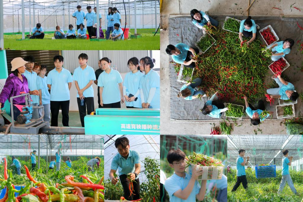 衔接校园与田园,“校地合作”热辣味。实践团走进衡阳鹏盛现代农业科技有限公司蔬菜种植基地,计划通过研学盘活乡村各类资源,丰富产业业态,促进产业融合,以点带面用一个平台带动一个村、盘活一片区域,真正吸引青年将根扎在基层。成员们亲身参与“菜篮子”的“种植-培育-采摘-包装-销售”完整产业链条及蔬菜种植基地的田间管理工作,学习和掌握相关的农业技术和知识;参观蔬菜加工厂,学习了解蔬菜的清洗、分拣、包装等加工流程及运输方式、保鲜措施和物流成本等情况,并协助工人进行部分操作。
