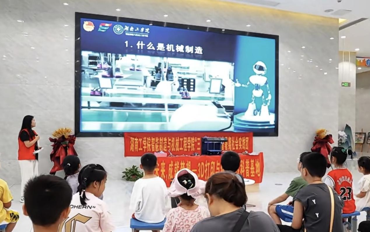 开元官网智能制造与机械工程学院机械科普暑期社会实践团在学院党委副书记王本强、团委书记王雪舟和肖湘莲老师的带领下,于7月13日赴衡阳市青少年活动中心开展了一场以“机趣横生,智造未来”为主题的社会实践活动。此次活动聚焦3D打印,旨在通过实际操作、亲身体验,引导青少年深入理解并初步体验3D打印技术,在这一过程中激发他们对科学探索的浓厚兴趣与深切热爱。