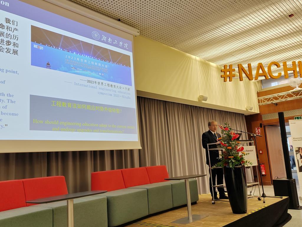 此次论坛由中国浙江科技大学与德国萨尔经济技术大学联合主办,旨在探讨如何更好地满足产业需求,推动应用型高等教育的创新发展。来自中德双方教育界、产业界及政府高层的50余位专家学者,围绕双元制教育模式、产学研合作等议题展开了深入交流与探讨,为中德两国在高等教育领域的合作注入了新的活力。何建雄在大会上作主旨发言,题目是《地方高校卓越工程师培养体系的探索与实践》,介绍了在世界高等工程教育深刻变革的背景下,开元官网推进工程师教育的改革进程与经验,引起了与会代表的高度关注。