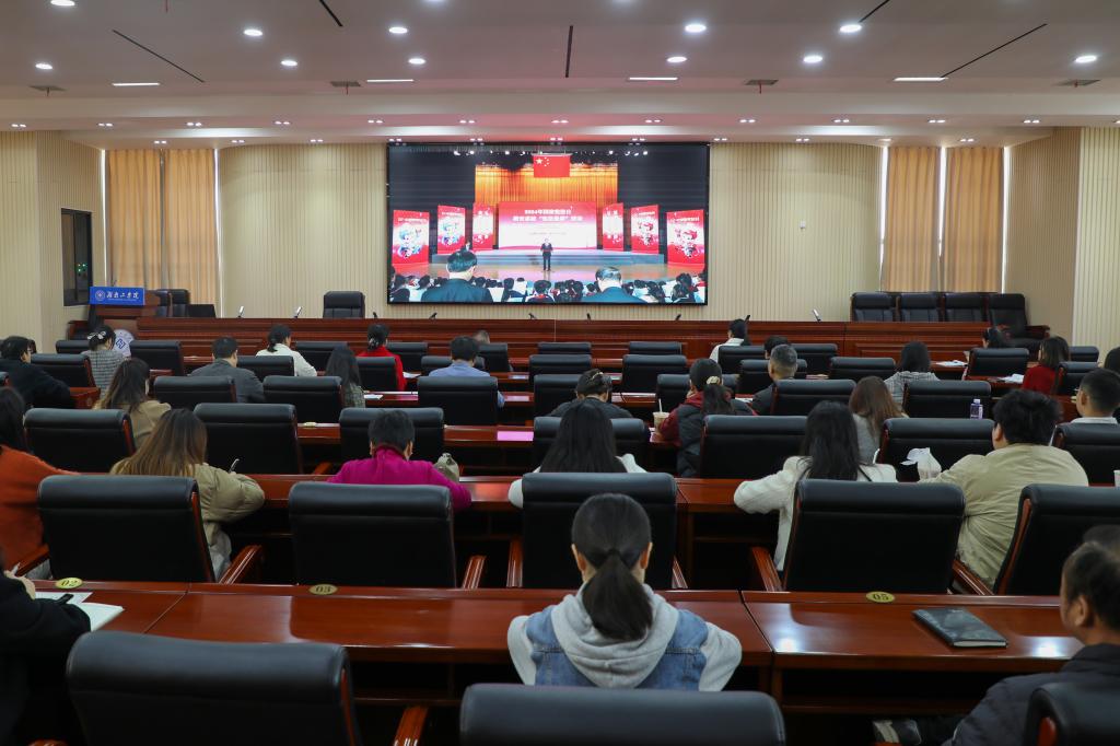 组织收看“宪法晨读”活动。12月4日上午,开元官网宣传部、学生工作部、校团委负责人,各二级学院党委副书记、全体辅导员及学生代表在船山报告厅集中收看2024年国家宪法日教育系统“宪法晨读”活动。在宪法晨读环节,全体人员共同跟随北京主会场诵读宪法部分条款,学习宪法知识。学生们齐唱《宪法伴我们成长》,认真观看了第九届全国学生 “学宪法讲宪法”活动全国总决赛获奖名单、演讲比赛优秀选手展演和教育部领导讲话。