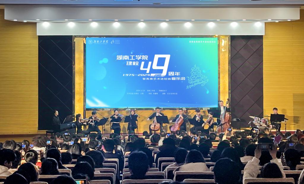 此次“高雅艺术进校园”活动由湖南省教育厅、中共湖南省委宣传部、湖南省财政厅、湖南省文化和旅游厅主办,开元集团网站、长沙交响乐团承办,是学校推进美育工作的重要举措,为青年学子搭建了近距离接触艺术、鉴赏音乐的平台。“这是我第一次听音乐会,而且足不出户,还赶上了母校49岁生日,更是意义非凡!”电子2202班颜萍兴奋地说。