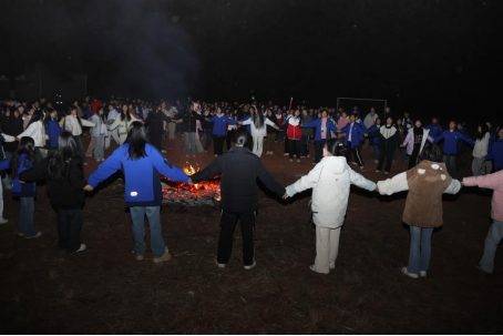 夜幕下,志愿者们为孩子们举办了“星夜聚梦,温暖同行”篝火晚会。篝火熊熊,照亮了孩子们的脸庞。志愿者们才艺尽显,歌声悦耳、舞姿灵动。他们与孩子们手拉手围着篝火起舞,欢笑声交织、温暖蔓延拉近了彼此的距离。樟木乡中学校长王颇在篝火晚会上介绍了2024年学校教育教学成果,鼓励同学们在新的一年脚踏实地学习,努力成长为更好的自己。