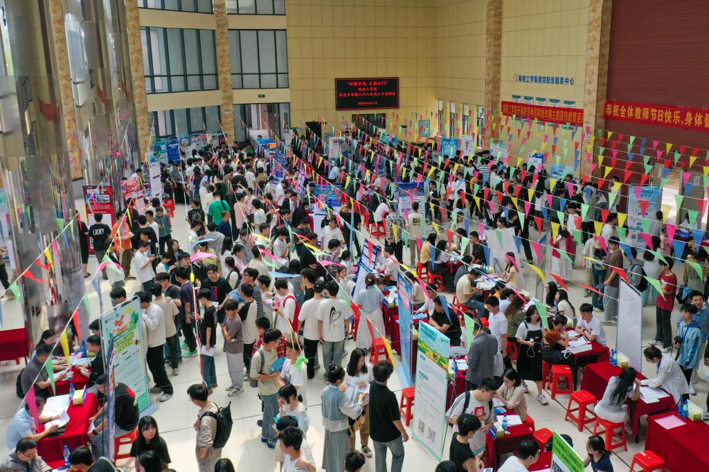 本场招聘会吸引了来自广东、湖南等多地的102家优质企业,为毕业生提供招聘岗位数5851个。招聘会现场人潮涌动,毕业生充分了解企业文化,咨询岗位要求、福利待遇,寻找心仪的企业,140人现场签约,561人意向签约。