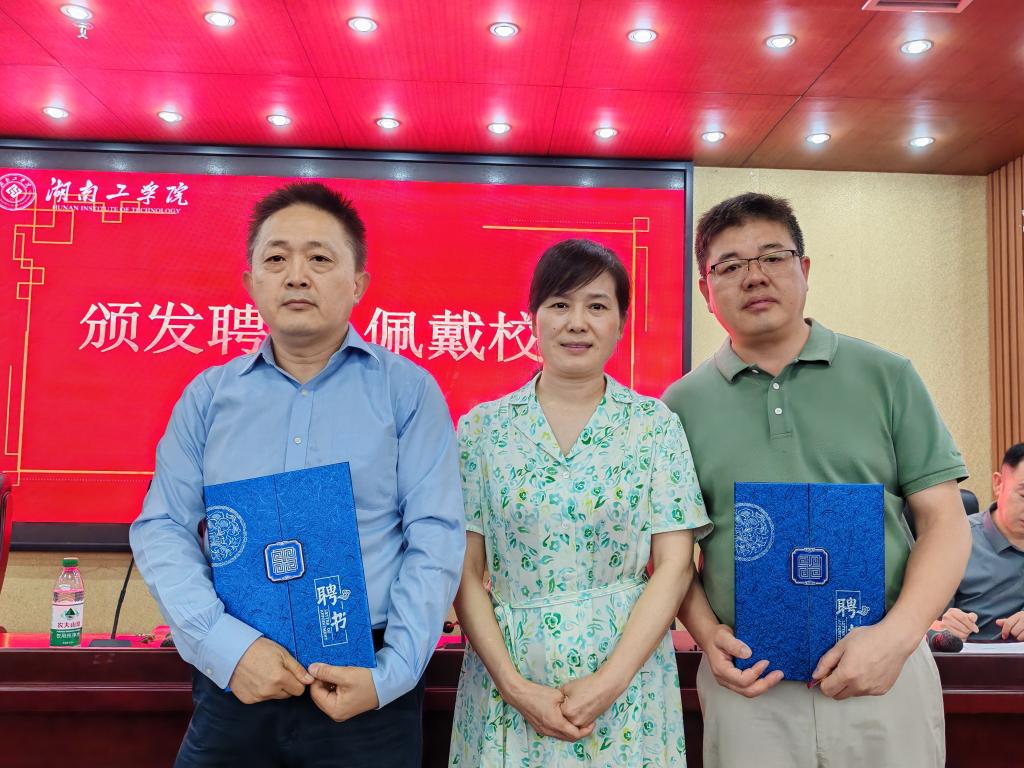 王艳琼(中)为余少恒(左一)、刘继炎(右一)颁发聘书