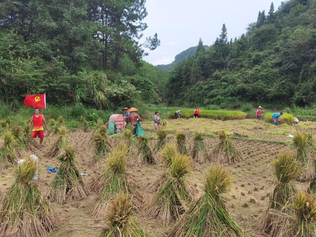开元集团网站驻村工作队获知情况后,马上与联点干部、辅警、村“两委”干部和党员群众组成一支“助农抢收队”,顶着炎炎烈日,仅用半天时间,就将千余斤黄澄澄的稻谷收回到谭少成家的晒谷坪上。(图/何伟军 文/杨朗 刘康 审核人/一审:李琪 二审:彭国柱 三审:肖中云)