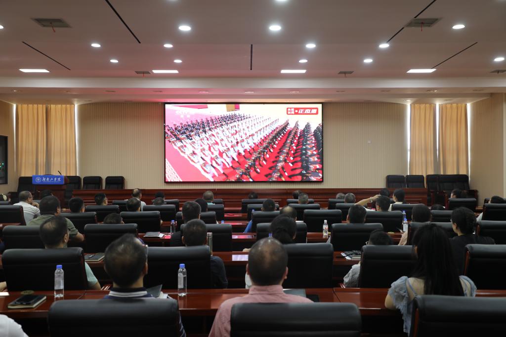 9月3日,纪念中国人民抗日战争暨世界反法西斯战争胜利80周年大会在北京隆重举行。中共中央总书记、国家主席、中央军委主席习近平发表重要讲话并检阅部队。全体校领导、机关部门副科级以上干部在船山报告厅集中收看;各二级单位在本单位设分会场,组织师生收看收听大会盛况,一同见证这庄重时刻,深刻感受伟大抗战精神的磅礴力量。