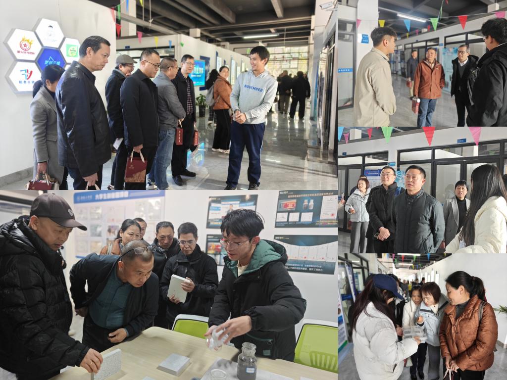 随后,校友们走进学校创新创业孵化基地参观。他们驻足各项目展位,认真听取介绍,并就技术研发、市场前景等问题与项目负责人深入交流。面对基地完备的孵化设施与浓厚的创新创业氛围,校友们纷纷为母校创新创业教育成果点赞,更在与年轻创业者的互动中,见证了新一代湖工学子的创新活力与拼搏精神。