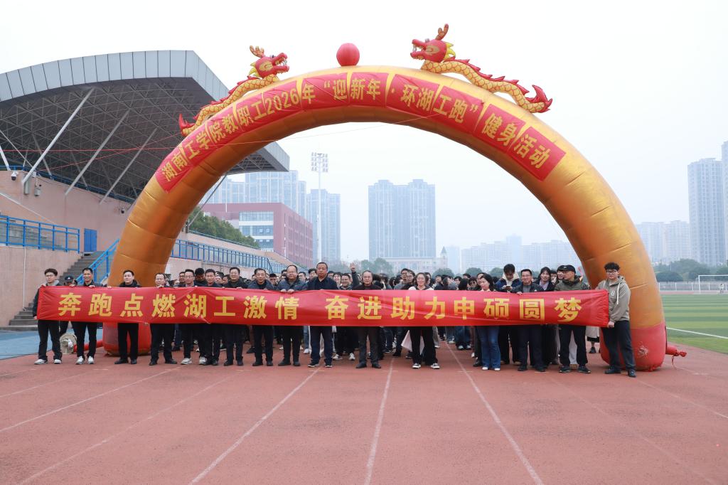 为积极倡导全民健身理念,丰富教职工业余文化生活,以昂扬向上的精神风貌迎接2026年的到来。12月31日下午,校工会组织全体教职工在北田径场隆重举行2026年“迎新年·环湖工跑”健身活动。校党副书记何建雄,校党委委员、校领导赵少平参加健身跑活动。