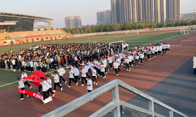 10月17日上午7点,化学与环境工程学院在北运动场举行了以“青春献礼二十大,奋进奔跑向未来”为主题的升旗仪式。学院党委书记周立,院长辛俊亮,党委副书记蔡玲,副院长黄俊歆,副院长刘宁,组织员谭斌,教科办主任刘赛,全体辅导员及新生班主任老师出席,全体学生参加。本次升旗仪式由学工办主任兼分团委书记陈凌霄主持。