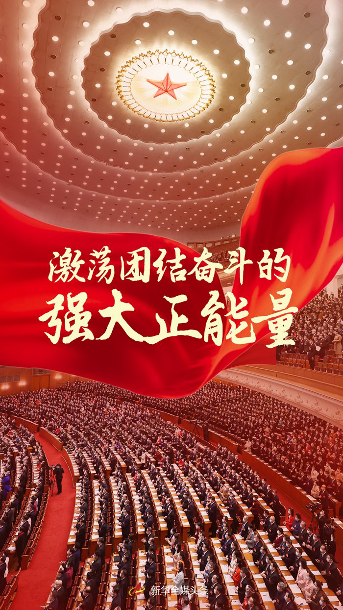 新华社北京3月12日电 题:激荡团结奋斗的强大正能量