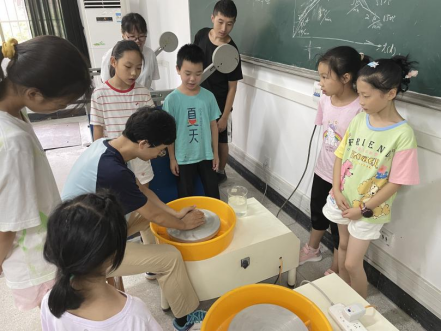 活动主题为:服务科技,贯彻“双减”,由新型建筑材料研究院策划组织。活动主要面向学校青年教职工子女,活动中开放了陶瓷制备实验室,并由袁龙华老师讲解示范了陶瓷制品成型中的注浆成型和拉坯成型两种工艺。小朋友们表现出浓厚的兴趣,在袁老师讲解示范后,小朋友们纷纷动起手来,制作相关样品。