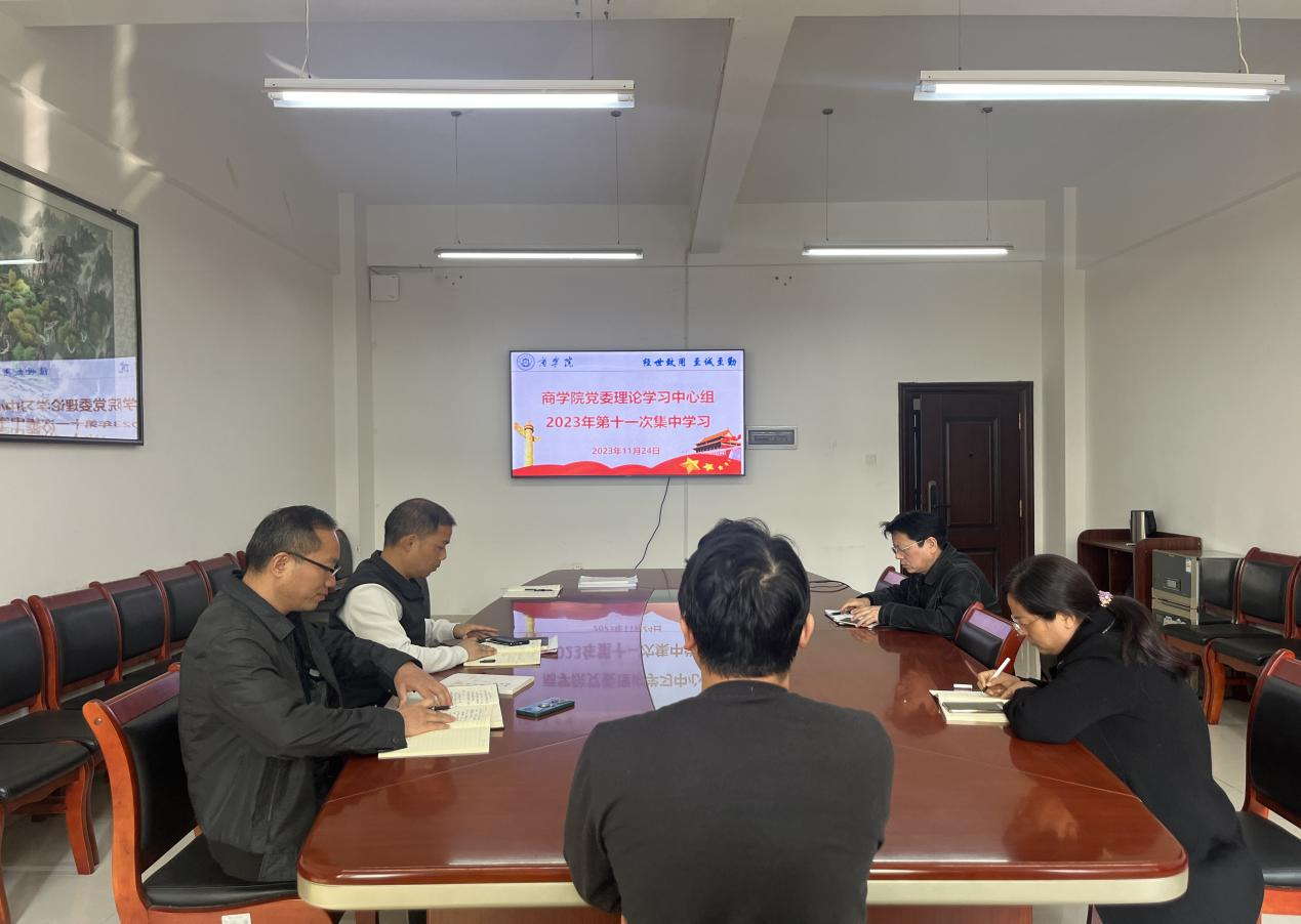 11月24日上午,商学院在经315会议室举行党委理论学习中心组2023年第十一次集中学习。商学院院长,代理党委书记王小兵主持并作总结讲话,党委理论学习中心组全体成员参加。
