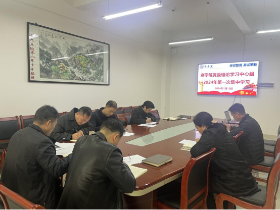 1月19日下午,商学院在经315会议室举行党委理论学习中心组2024年第一次集中学习。商学院党委书记曹文明主持并作总结讲话,党委理论学习中心组全体成员参加。