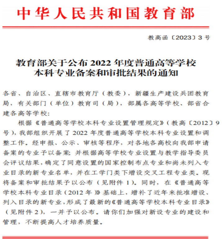 4月4日,教育部发布了《教育部关于公布2022年度普通高等学校本科专业备案和审批结果的通知》(教高函〔2023〕3号)我院申报的大数据管理与应用本科专业成功获得教育部备案。大数据管理与应用专业学制四年,授予管理学学士学位,目前全国只有223所高校开设了该专业。