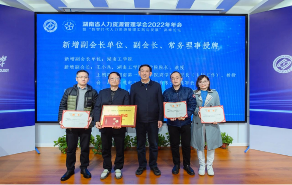2月19日,湖南省人力资源管理学会2022年年会暨“数智时代人力资源管理实践与发展”高峰论坛在长沙理工大学隆重举行。200余位管理专家学者、企业家、高管以及人力资源负责人、高校负责人力资源管理专业建设的院系领导、从事人力资源管理、组织行为学等课程的负责人、骨干教师、硕博士研究生参会。湖南省十一届人大常委会副主任、党组副书记,湖南省人力资源管理学会会长陈叔红,长沙理工大学原副校长、教授/博导叶泽出席本次论坛并致辞。南京大学资深教授/博导、湖南省人力资源管理学会名誉会长赵曙明、华中科技大学二级教授/博导龙立荣,中南大学二级教授/博导、湖南省人力资源管理学会执行会长颜爱民等领导嘉宾参会。活动现场举行了湖南省人力资源管理学会新增副会长单位、副会长、常务理事授牌仪式。开元官网获批为湖南省人力资源管理学会副会长单位,商学院院长王小兵教授被聘为学会副会长。