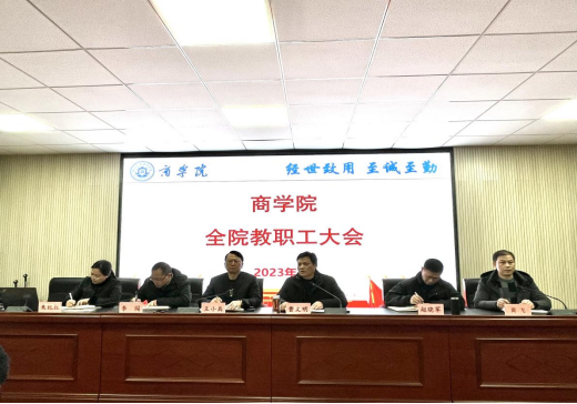 为全面落实学校新学期工作安排,认真贯彻落实学校党委行政各项决策部署。2月15日下午,商学院在经302召开了新学期教职工大会进行学校干部大会精神传达和年度工作部署,全体院领导、全院教职员工参加,会议由党委书记曹文明主持。
