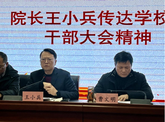 就如何贯彻落实学校新学期干部大会精神,王小兵结合我院实际,对新学期工作进行了全面部署。他分析了我院良好的发展态势以及面临的严峻形势,有针对性地提出了2023年度学院的重点任务目标:学习贯彻落实二十大精神;高质量通过教育教学审核评估;国家课题不断线;会计硕士点验收通过;抓学科建设、考研率、教风学风建设和课堂教学;抓作风建设、就业率、产教融合等。形成“创新科研+课堂思辨+实践实训+大赛训练+创业实践”,集“科研、教学、实训、竞赛、孵化、运营”六位一体的创新创业教育模式,持续提升教育教学质量。号召全体教职员工主动担当,为学校的发展贡献智慧、建功立业。