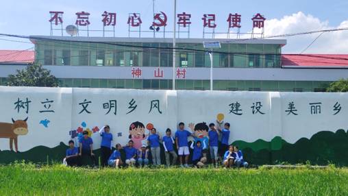 实践团围绕“乡村文明建设”、“党史学习教育”等主题为村部绘制墙画。他们头顶炎炎烈日,忍受蚊虫叮咬,站在杂草丛中,一笔一划勾勒、填色,以墙为纸画美乡村。历时三天,从太阳初升到日落西下,成员们竭尽所能,在探索与合作中完成了长达50米的文化墙绘制。如此耳目一新的文化感官,让乡亲们直观感受文化、处处感知文明,携手乡亲共建文明乡村。