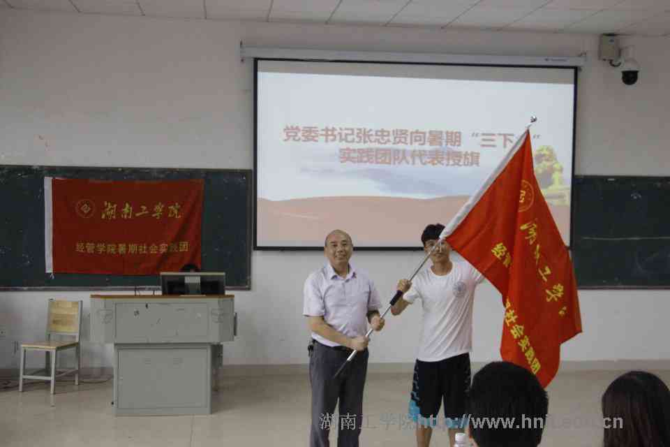 院团总支书记张星星宣读了校团委《 2018年大学生暑期“三下乡”社会实践活动示范团队评审结果公示》文件,经管学院共有校级示范团队10支,其中省级重点团队1支,校级重点团队1支。张忠贤向暑期“三下乡”实践团队代表授旗。物卓1501班时新宇作为团队负责人代表发言,倡议全体暑期“三下乡”实践团队队员共同协作,力争圆满完成本次三下乡调研任务。
