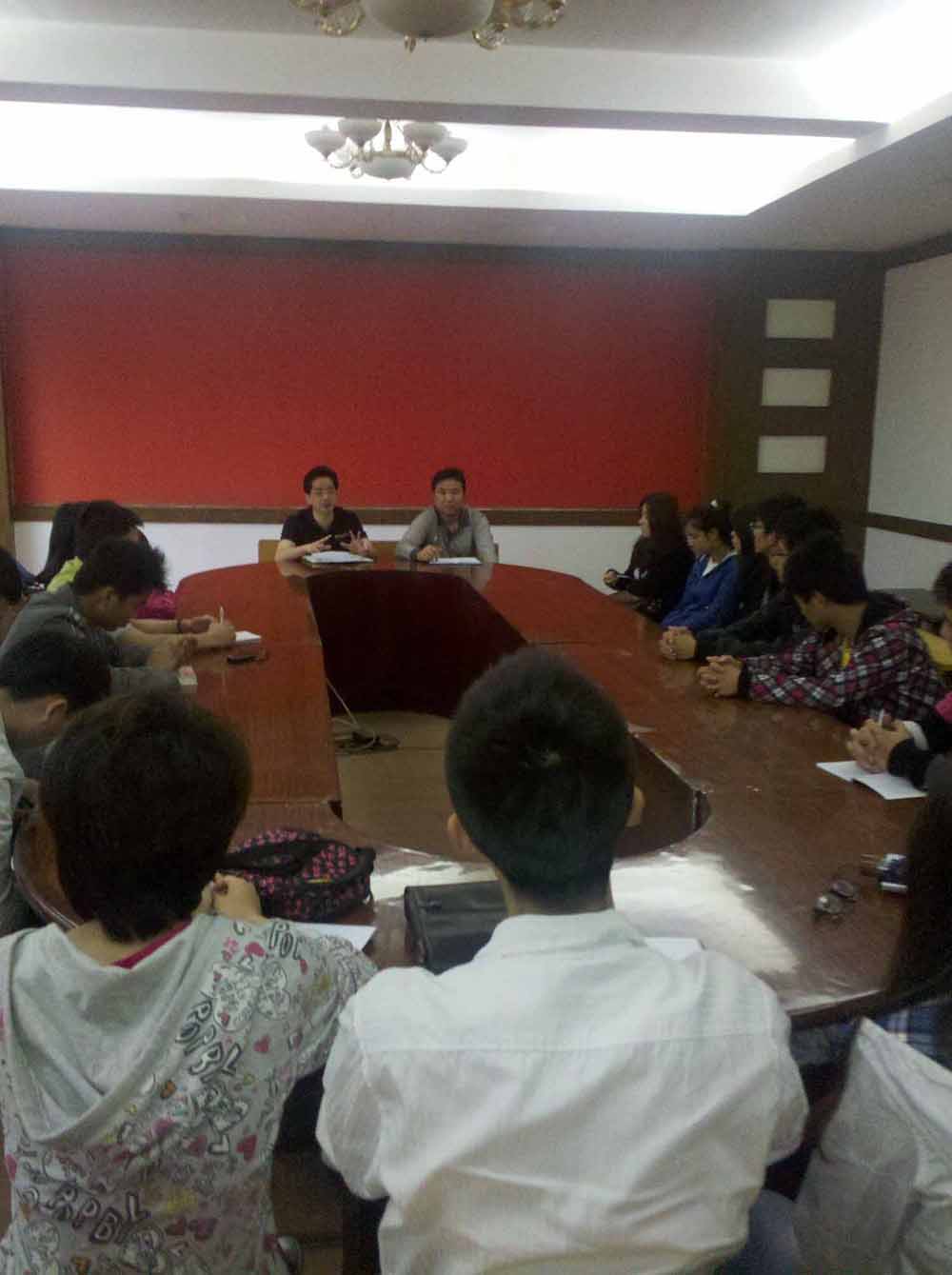 5月14日下午,党总支书记袁勤和党总支副书记黄春喜就即将到来的“开元集团网站第一届太极拳大赛”召开动员大会,年级辅导员王雪舟、团总支学生会主席团成员、体育部干部以及参赛队员各小组长参加了会议。