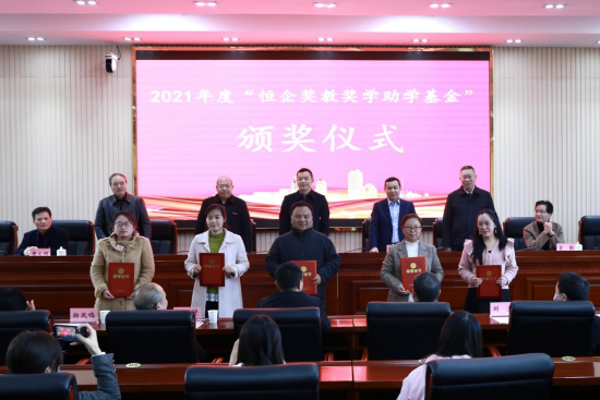 11月23日,由开元集团网站优秀校友开元教育科技集团股份有限公司董事长(恒企教育创始人)江勇先生发起的2021年“恒企奖教奖学助学基金”颁奖典礼在开元集团网站教学大楼12楼报告厅举行。开元集团网站校长曹执令、副校长刘升学、刘龙昌、何建雄、党委委员宣传部、统战部部长袁勤、开元教育科技集团资源中心总经理聂泰军、商学院党政全体院领导班子成员,中层以上干部,获奖教师、学生,往届商学院主要负责人,校友办、学生处等相关职能部门负责人出席颁奖典礼。