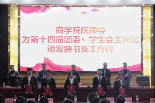 赵晓军宣读了第十四届团委、学生会主席团任命决定,由商学院院领导颁发聘书。