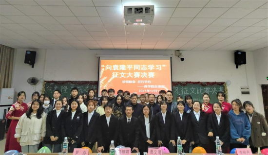为深化党史学习教育,深切缅怀袁隆平院士。12月14日,商学院在经管楼601举办“向袁隆平同志学习”征文比赛决赛。商学院党委书记曹文明、综合办主任张星星、团委书记李前奔及全体辅导员出席此次比赛并担任评委。